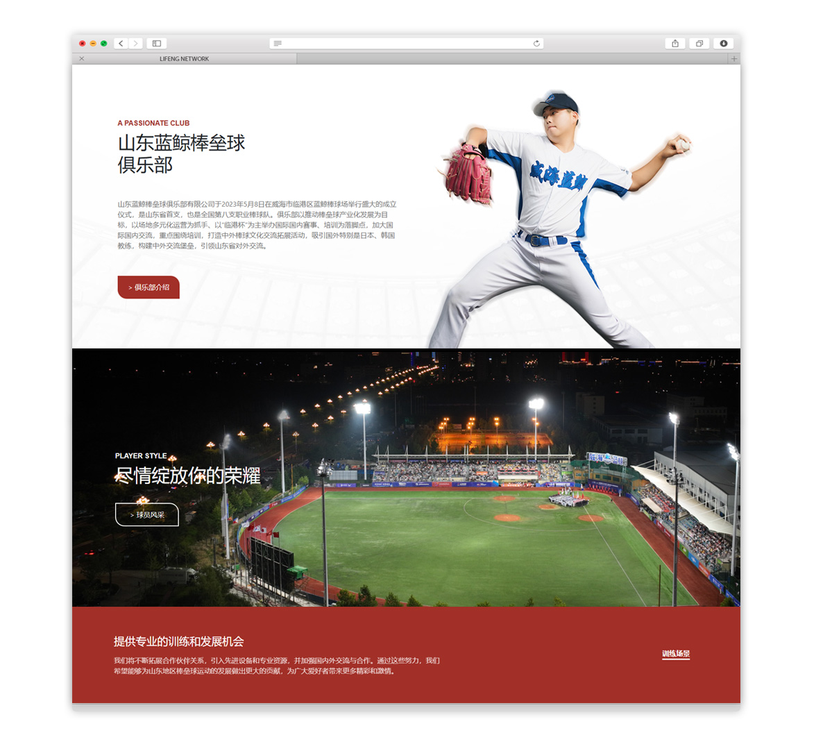 山东蓝鲸棒垒球俱乐部有限公司于2023年5月8日在威海市临港区蓝鲸棒球场举行盛大的成立仪式,是山东省首支,也是全国第八支职业棒球队。